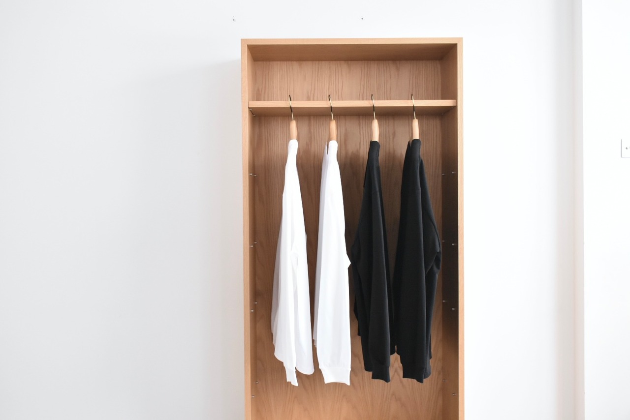 ゆったりとしたシルエットながらも、きれいな目面とリブ使いのネックなど