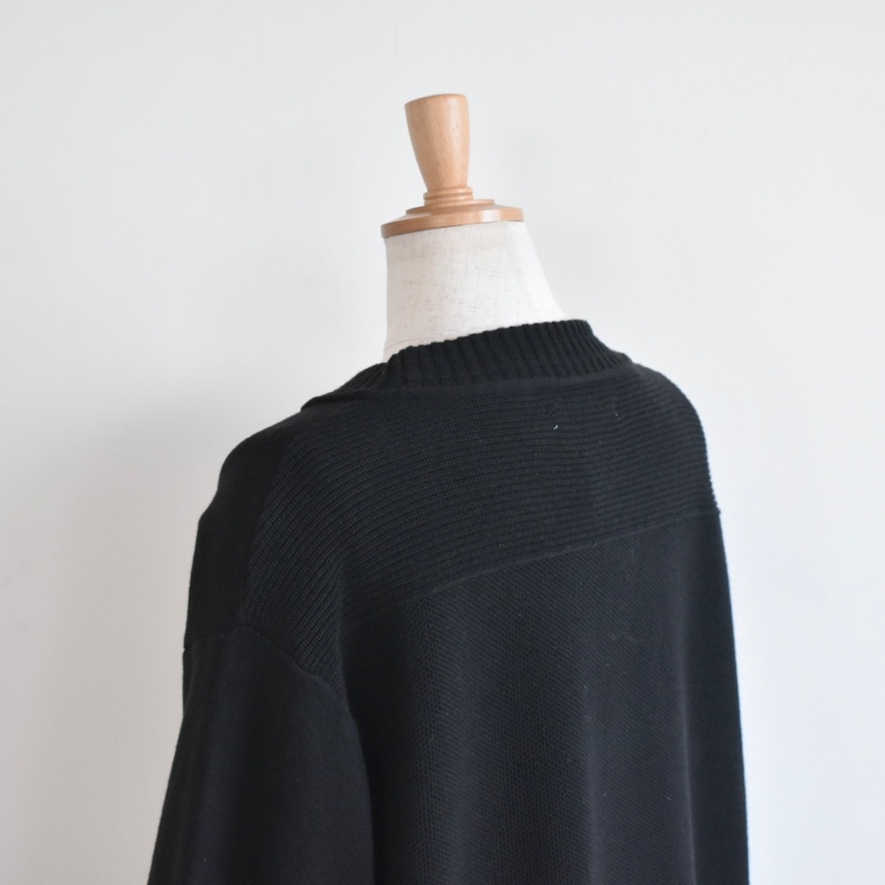 パーツにより編み方を変え組み合わされたアシメトリーなデザインが