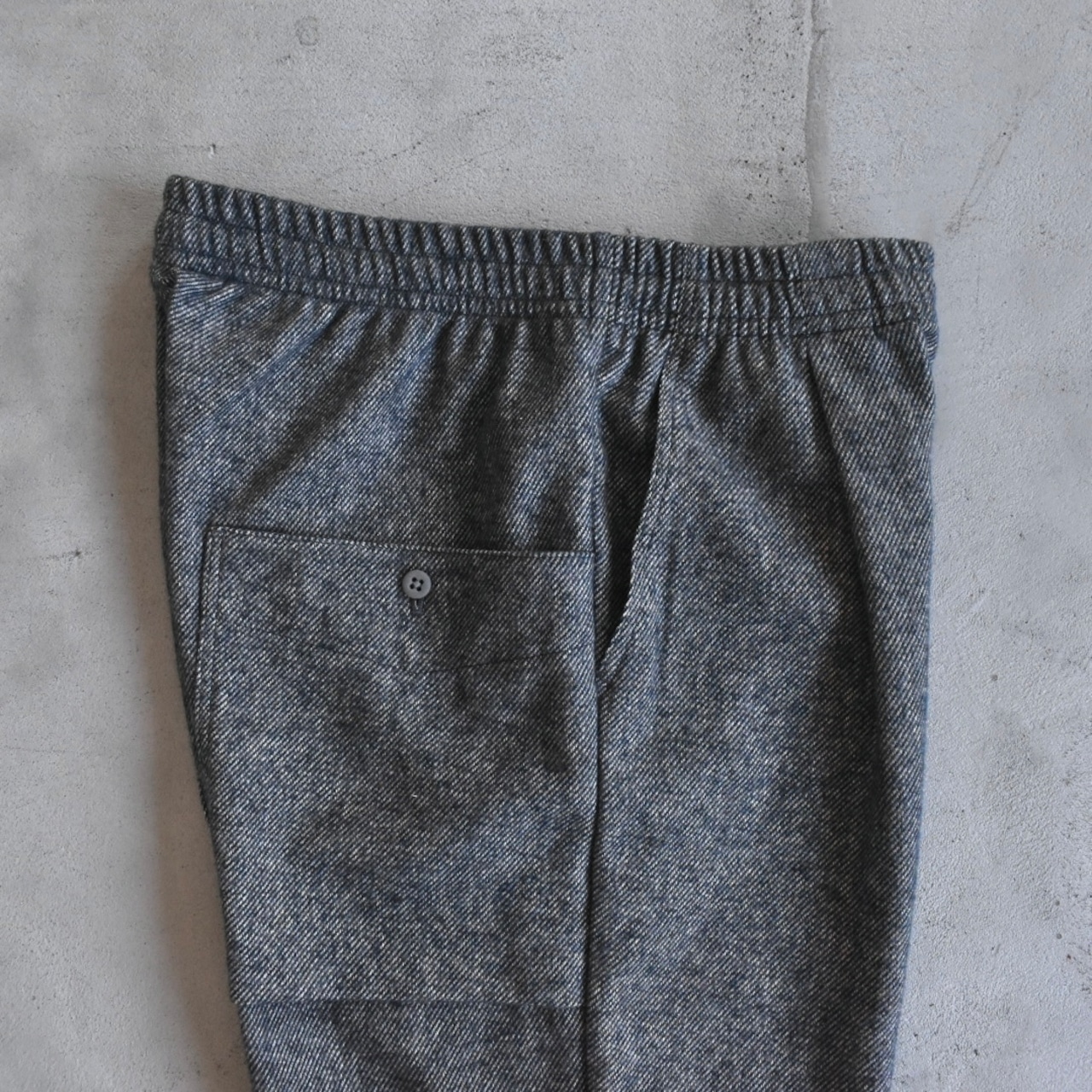 綿100%の3色の糸を撚りツィード織りした素材を使用したアンプスパンツです。