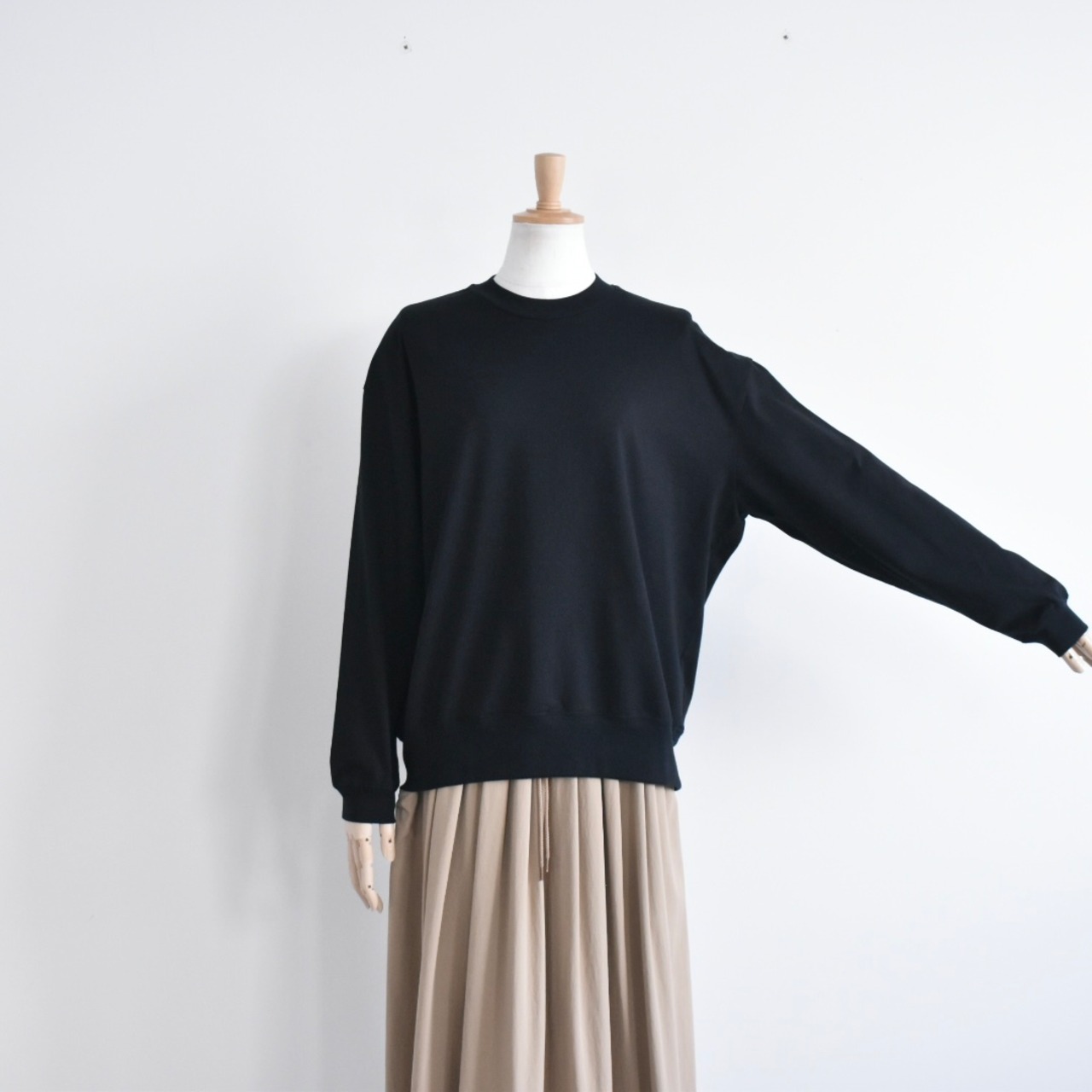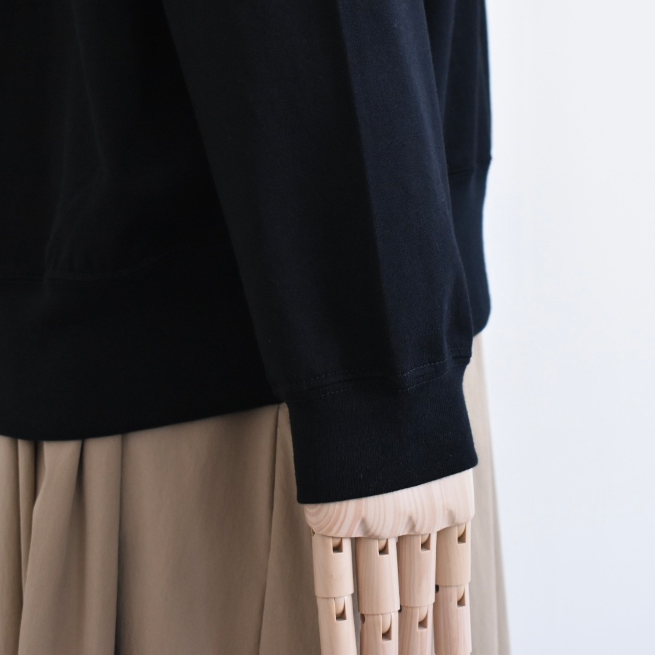袖や裾にはリブを配し、スウェットライクな表情に。