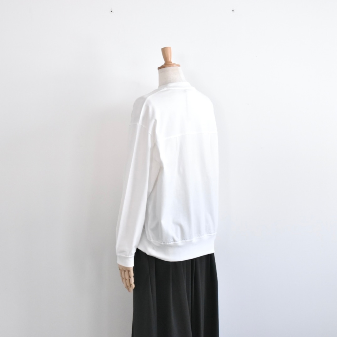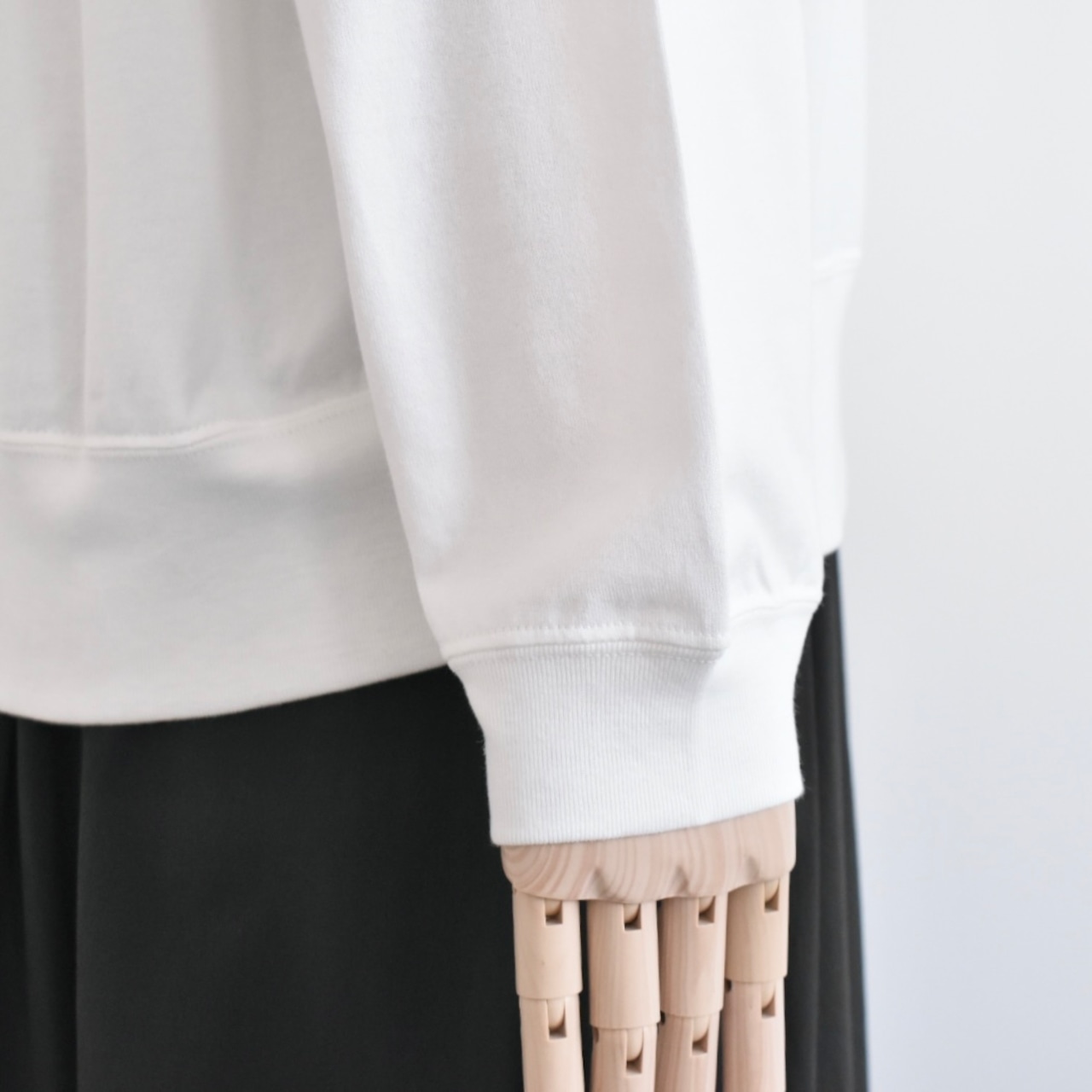 袖や裾にはリブを配し、スウェットライクな表情に。