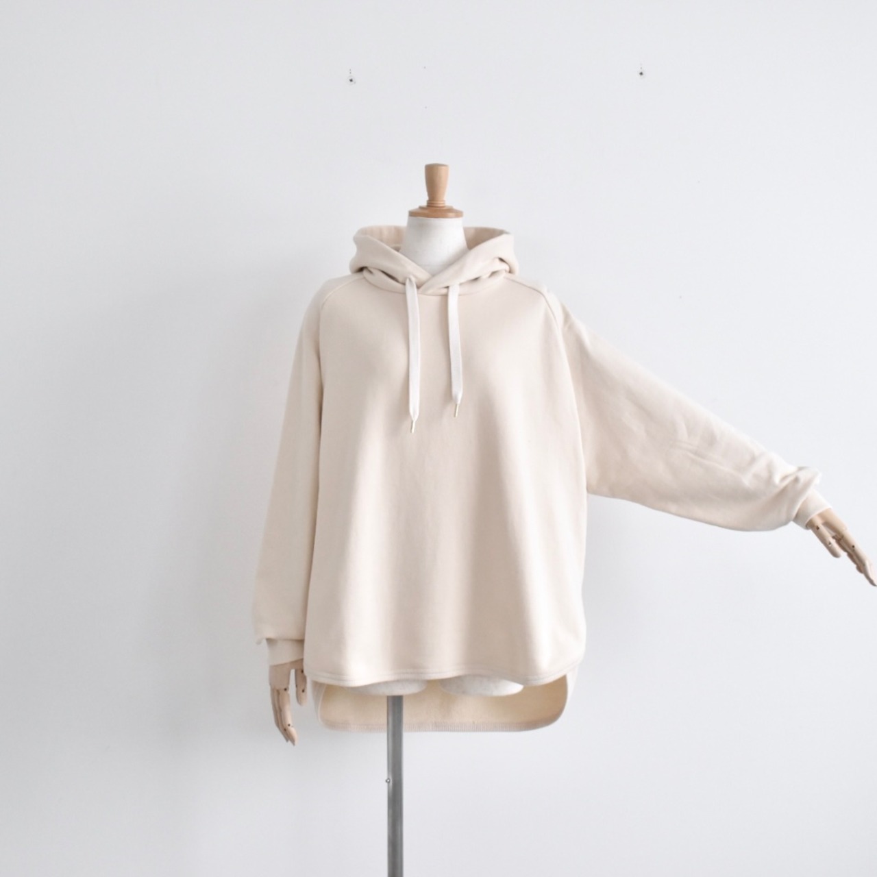 立体感のあるシルエットが大人可愛いプルオーバーパーカー。