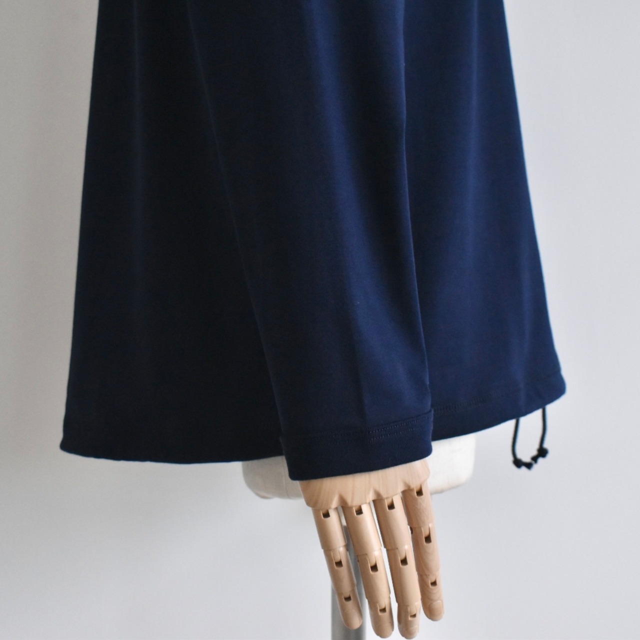 裾のヒモを絞ることで色々なニュアンスが楽しめる裾紐仕様は