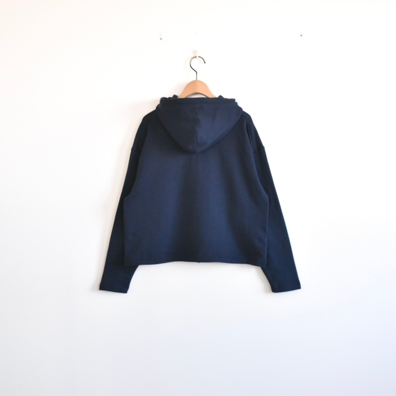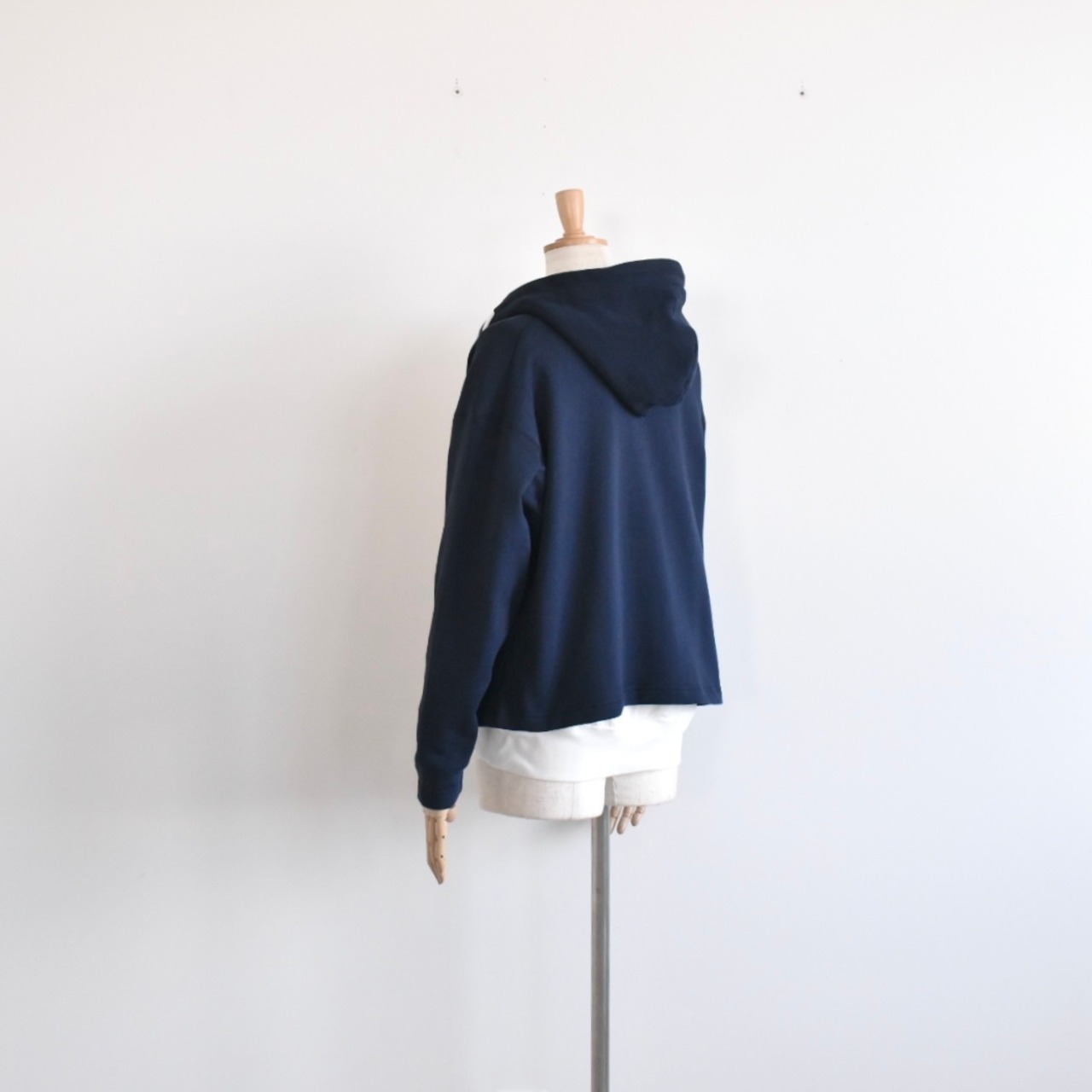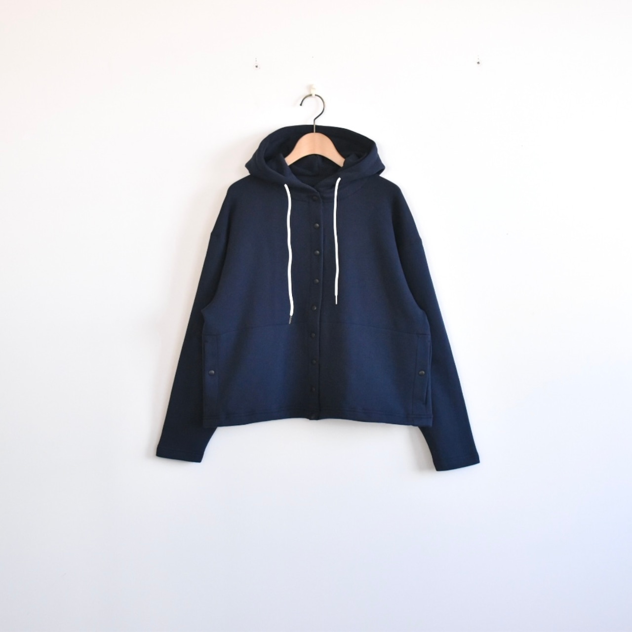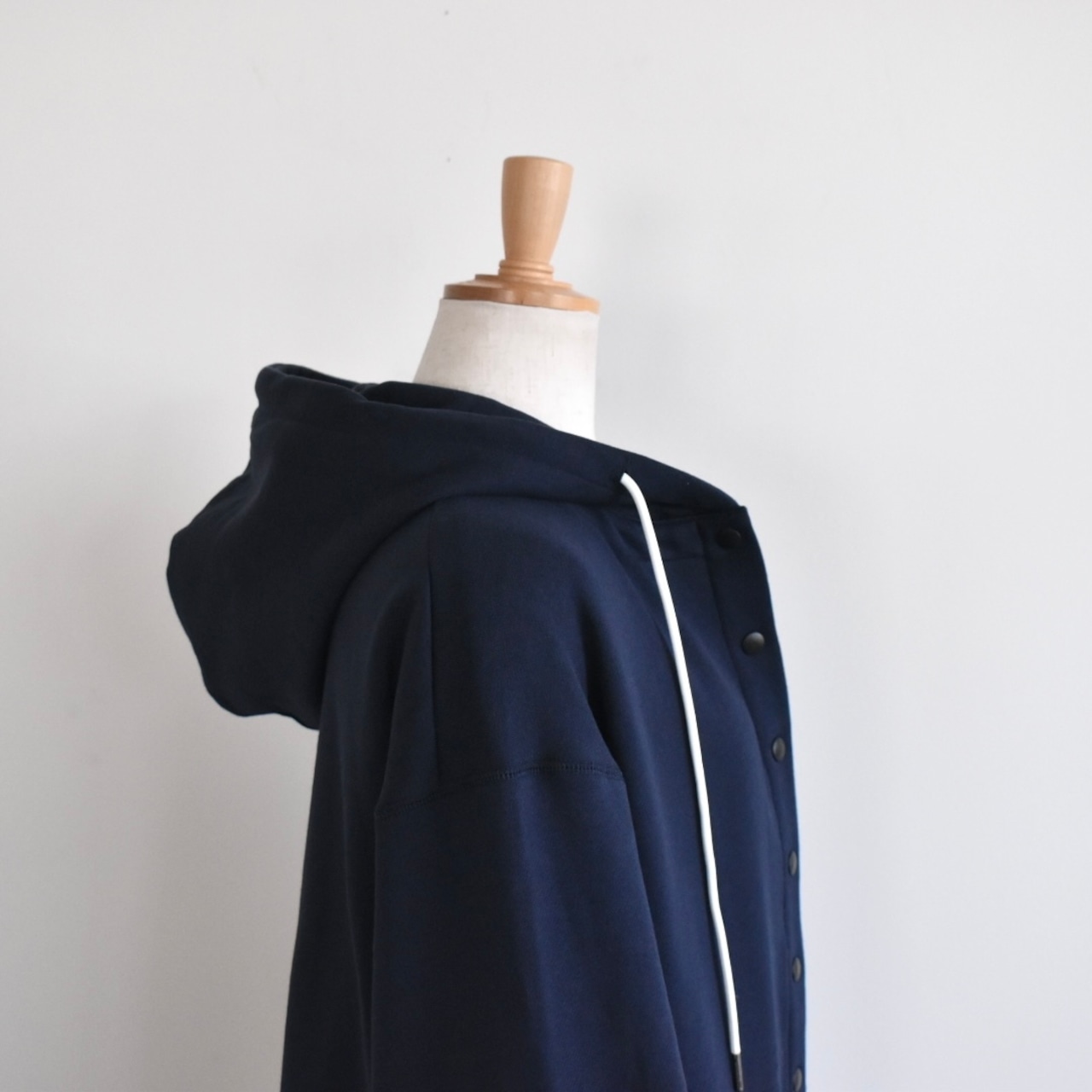 フーディーとしては珍しくファスナーではなくボタンデザインなので、